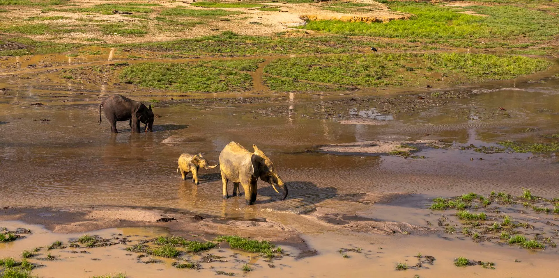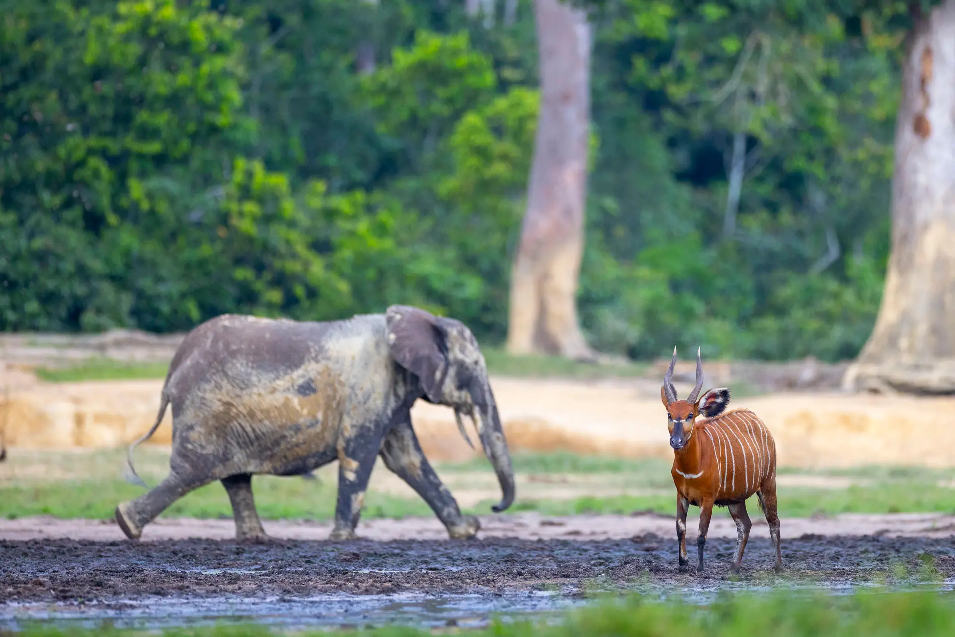 A mineral deposit deep within the forest that attracts hundred of elephants, groups of bongo, grey parrots and forest buffalo!