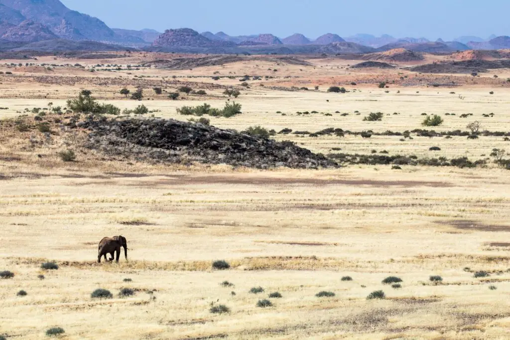 Damaraland – Beauty is synonymous with Namibia’s great landscapes. Rough around the edges in some places perhaps, but always filled with life, despite the harsh environment. As we turn inland from the Skeleton Coast, the Kunene Region captivates with its fascinating and rough landscapes of red dust and rocks that turn ablaze in the golden hour light. Home to the Damara people, this part of Namibia sees very little rainfall, if any, in the dry season. It is the perfect location to track desert-dwelling mammals, which have physically adapted to arid conditions. Elephants with long, graceful elongated legs can travel long distances across rocky expanses, and lions have learnt to hunt in this atypical terrain. The Brandberg, Namibia’s highest mountain, and the Petrified Forest are fascinating landscapes that will transport travellers to other times. And for more of a cultural stop, the carved engravings in the red rock of Twyfelfontein is a humbling experience, and the Living Museum the perfect place to understand and learn the traditions of the Damara.