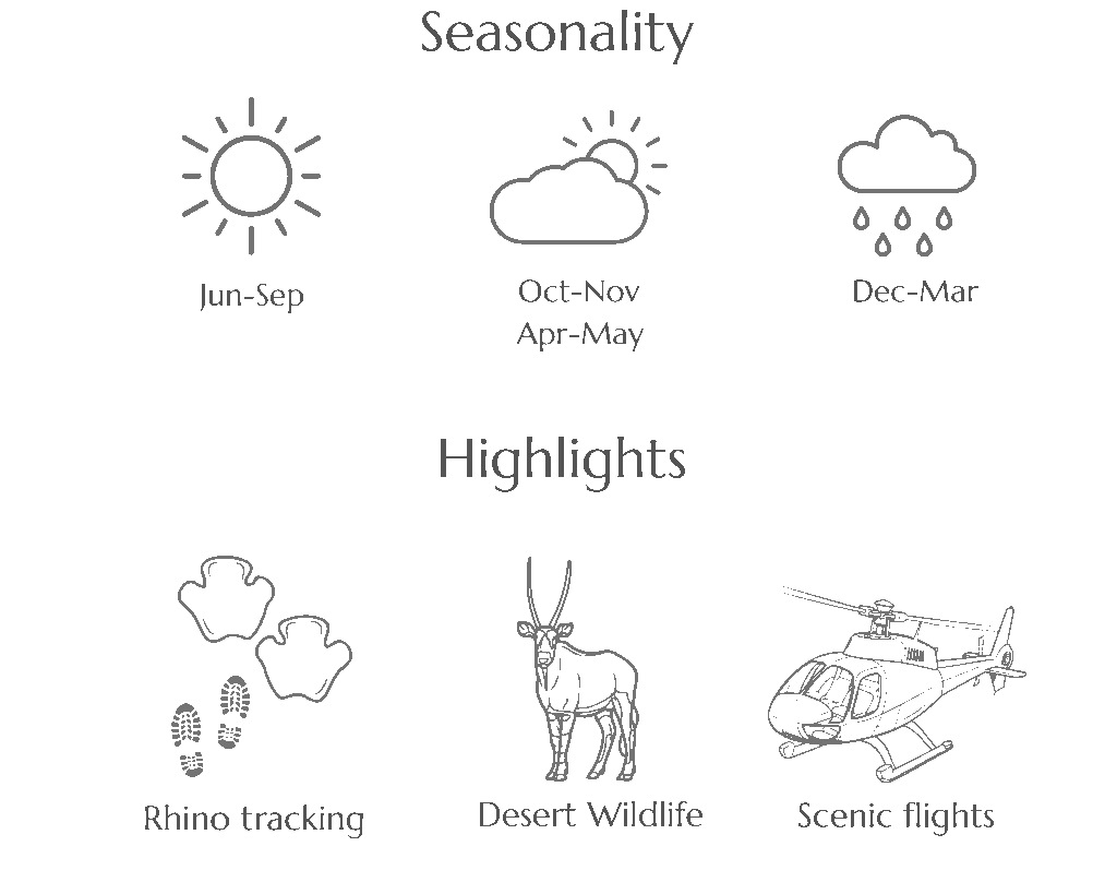Are you interested in encounters with rare species such as balck rhino, desert adapted lion and elephant, aardvark and brown hyena?